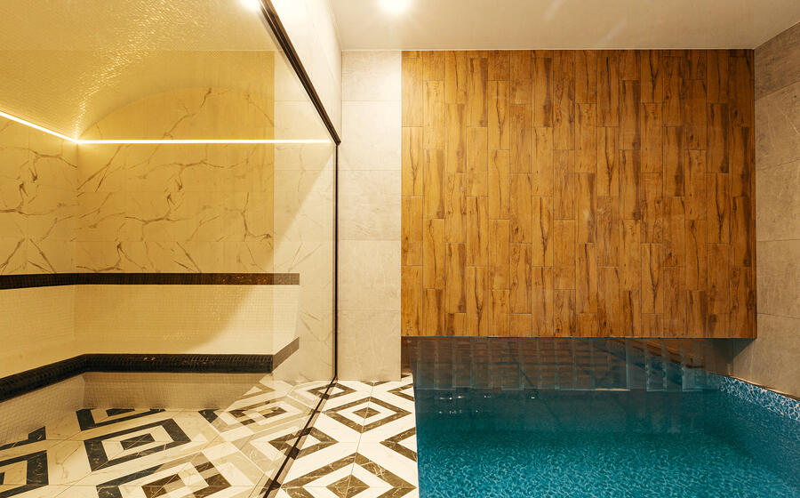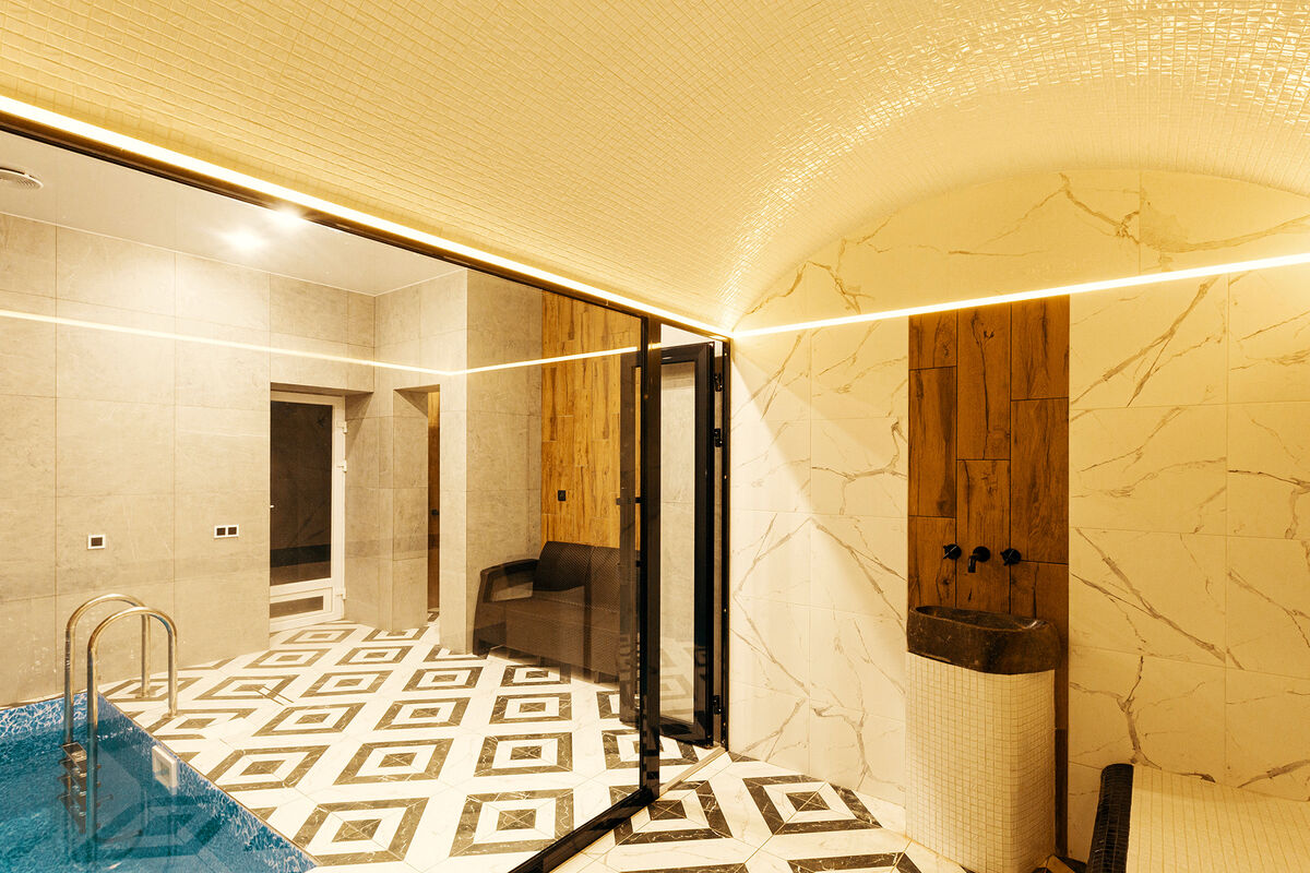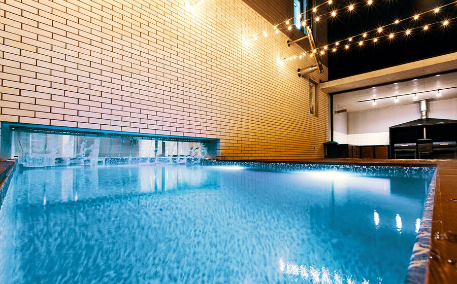 - Подогреваемый бассейн в доме с выходом на улицу (теплый бассейн в доме и на улице)