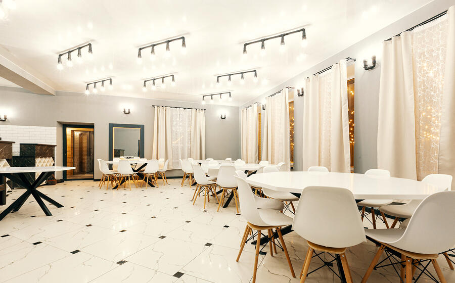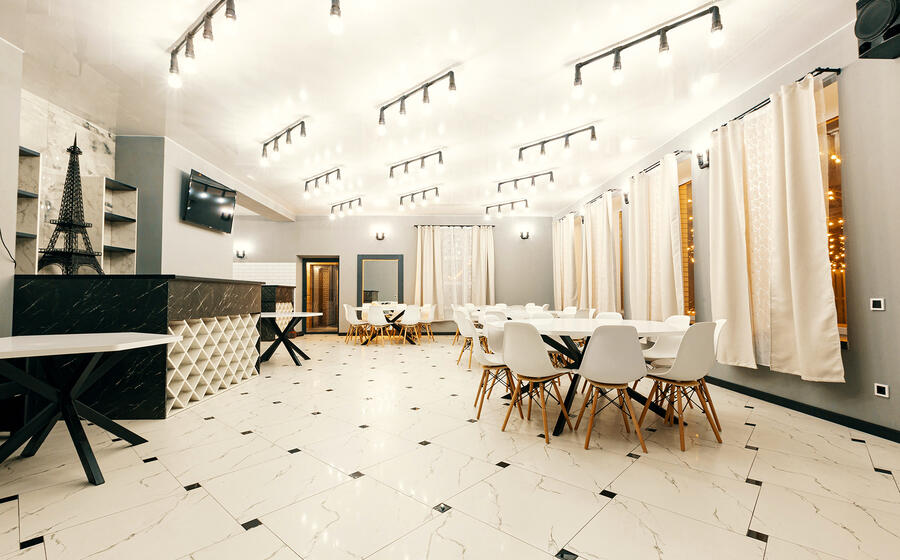 - Банкетный зал 70 кв., с высотой потолков 3,3 м